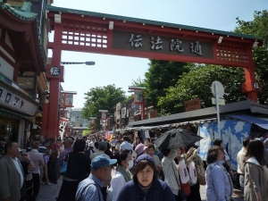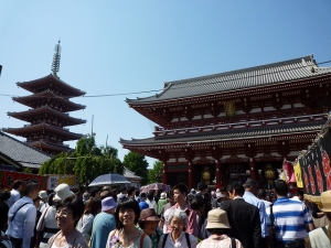 El templo más antiguo de Tokio es conocido con el nombre de 'Asakusa Kannon' que literalmente significa diosa de la misericordia de Asakusa. La historia del templo con 30 millones de visitantes un año comenzó en el siglo VII. En los primeros años del Shogunato Tokugawa, Tokugawa Ieyasu designaó Sensō-ji templo tutelar del clan Tokugawa. El templo ha sido adoración por el pueblo y el poder de la época.Más allá de la puerta Hozomon está la sala principal del templo y una pagoda de cinco pisos.